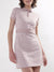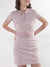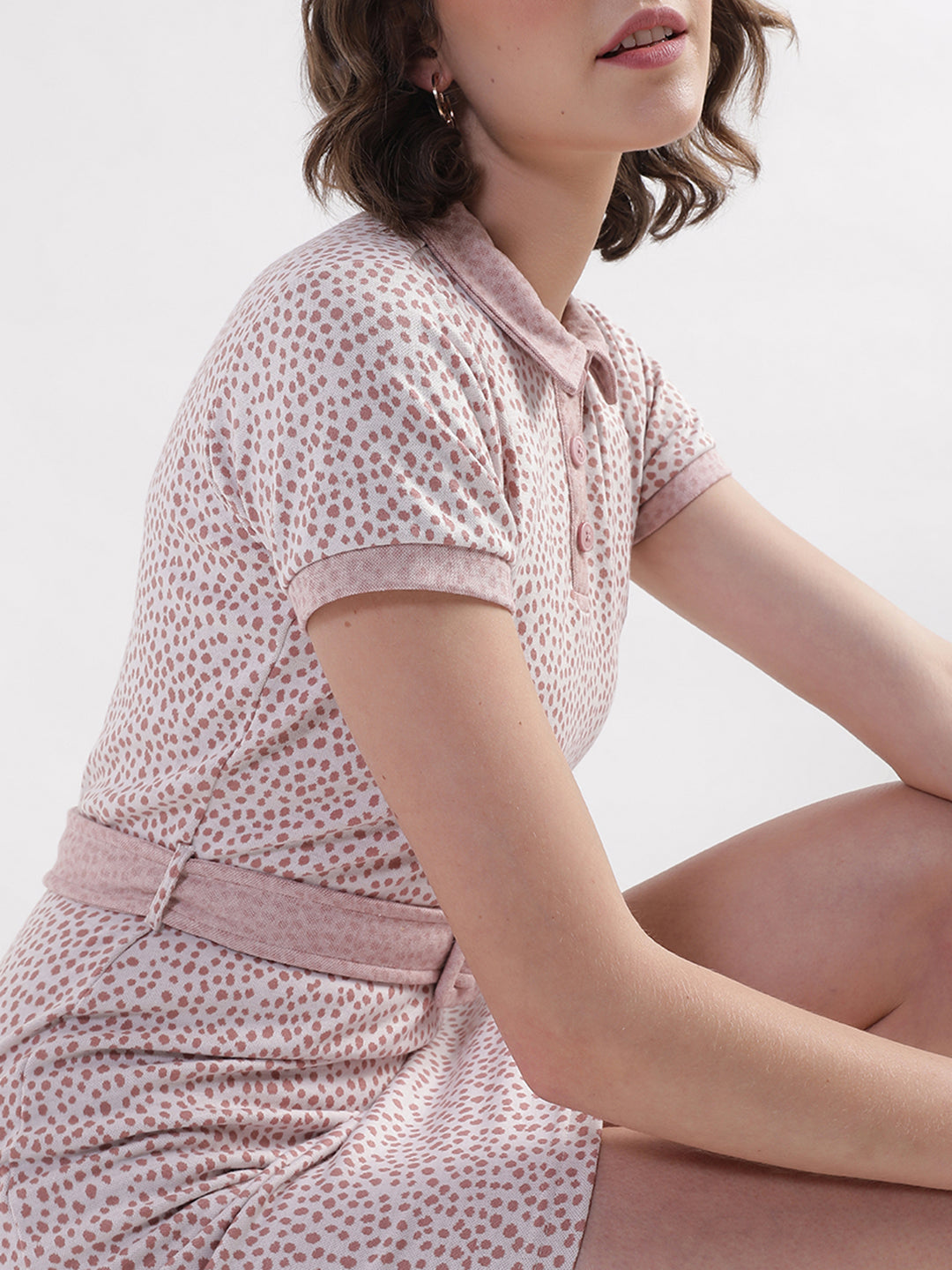 Elle Womens Womens Abstract Patterened Knit Short Dress With Shirt Collar And Small Placketr For Closure And Contrast Collar And Placket.It Has Short Sleecesand Self Fabric Belt At Waist