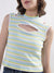 Elle Womens Womens Sleevless Striper Rib Top With Keyhole At Front And Contrast Binding