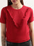 Elle Womens Womens Deep Red Full Sleeve T-Shirt With Volume Sleeves And Ruffles At Cuff