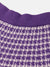 Introducing the stunning purple skirt, designed with a flattering fit and flare silhouette. its vibrant color and eye-catching printed pattern make it a must-have for any fashion-forward individual. crafted with utmost care and attention to detail, this skirt effortlessly combines style and comfort. elevate your wardrobe with this unique piece that is sure to turn heads wherever you go.