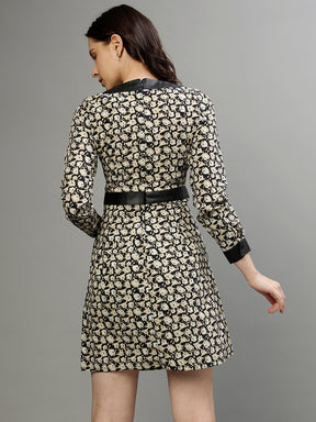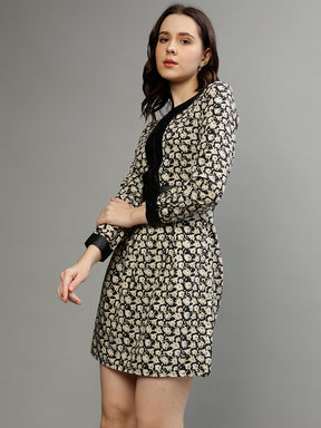 Elle Women Printed V Neck Full Sleeves Dress