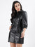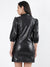 Elle Women Black Solid Spread Collar 3/4th Sleeves Shirt Dress