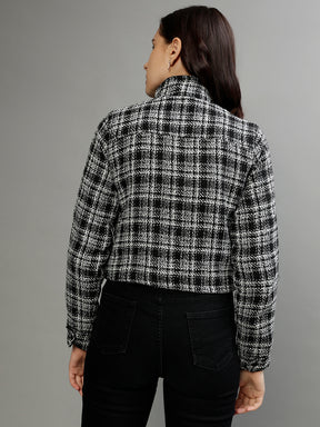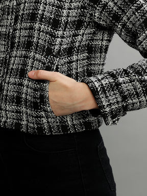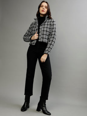 Women Checked High Neck Full Sleeves Jacket