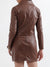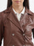 Elevate your outerwear collection with this womens tan leather jacket. Crafted from high-quality 100% polyester, it boasts a sleek lapel collar and full sleeves, adding a touch of sophistication to your look. Embrace timeless style and stay warm in this chic leather jacket.