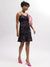 Women Black Printed Shoulder Straps Sleeveless Dress