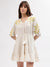• Elle Women Off White Embroidered V Neck 3/4th Sleeves Dress