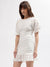 Elle Women White Embroidered Boat Neck Short Sleeves Dress