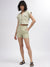 Experience ultimate comfort with these relaxed fit shorts for women. Crafted from soft cotton, they feature a vibrant green pattern that exudes a fresh, summery vibe. The concealed zipper closure ensures a seamless look. Perfect for casual outings or lounging at home.
