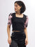 Women Black Colour Blocked Square Neck Short Sleeves Top
