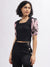 Elle Women Black Colour Blocked Square Neck Short Sleeves Top