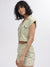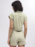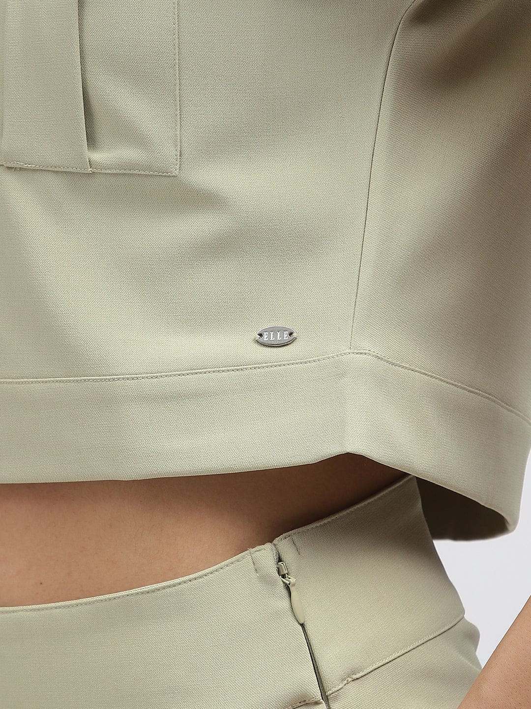 Elle Women Green Solid V-Neck Short Sleeves Top