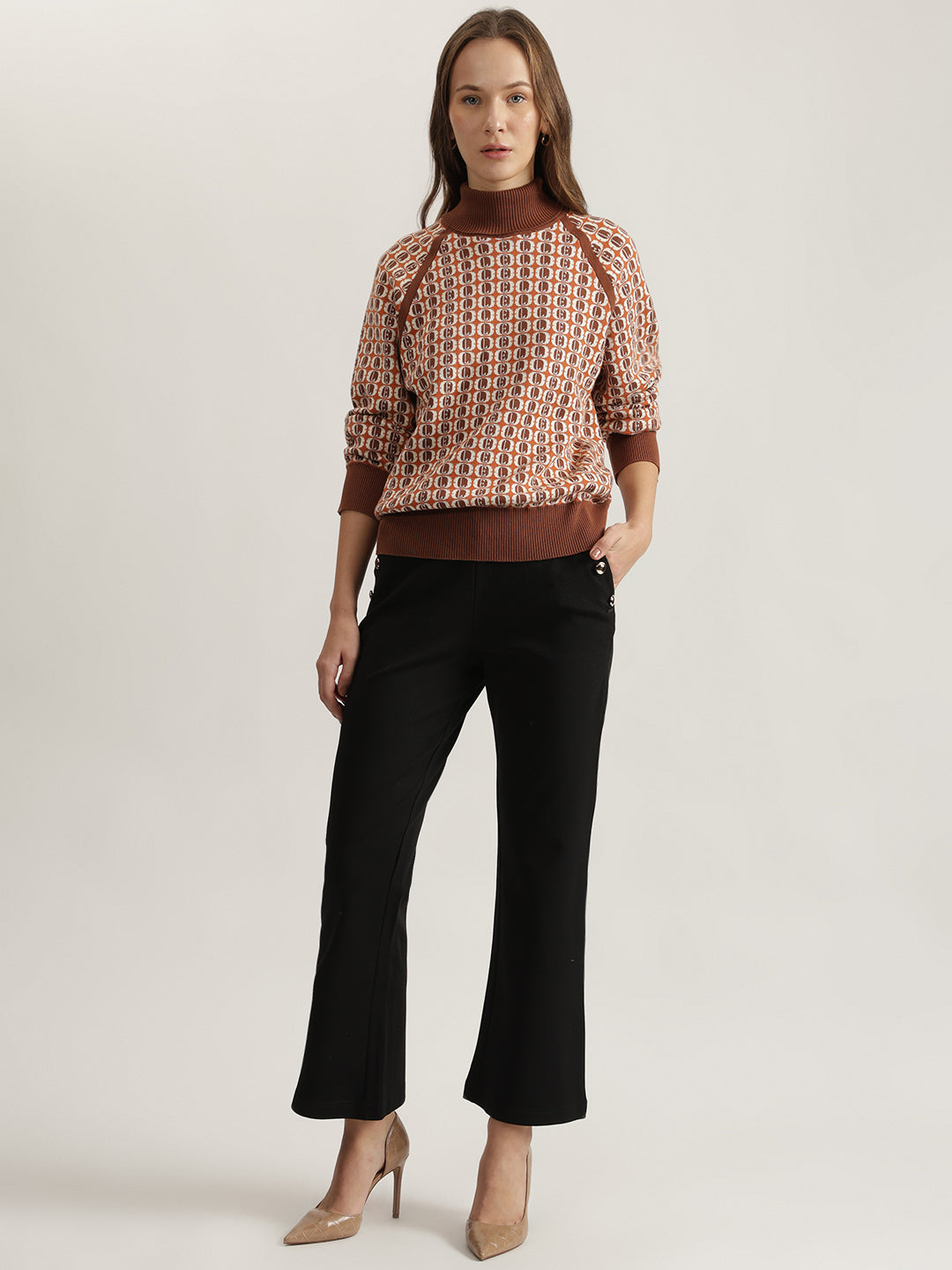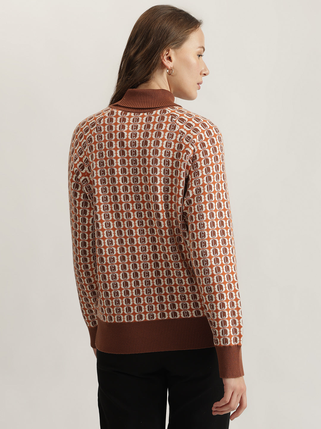 Cozy up in style with this multi-colored, printed pullover sweater. Featuring a relaxed fit, full sleeves, and a flattering turtleneck, this 100% cotton sweater is perfect for everyday wear. The pull-on closure makes it easy to slip on and off.