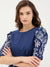Discover elegance with our blue fit and flare dress, designed to enhance your style with its exquisite embroidered pattern. Crafted from pure cotton, this dress ensures comfort and breathability, making it perfect for any occasion. The half sleeves and round neck add a touch of sophistication, while the side zipper closure offers a seamless fit. Whether you're attending a casual brunch or an evening event, this dress promises to be a versatile addition to your wardrobe, effortlessly combining comfort and chic style.