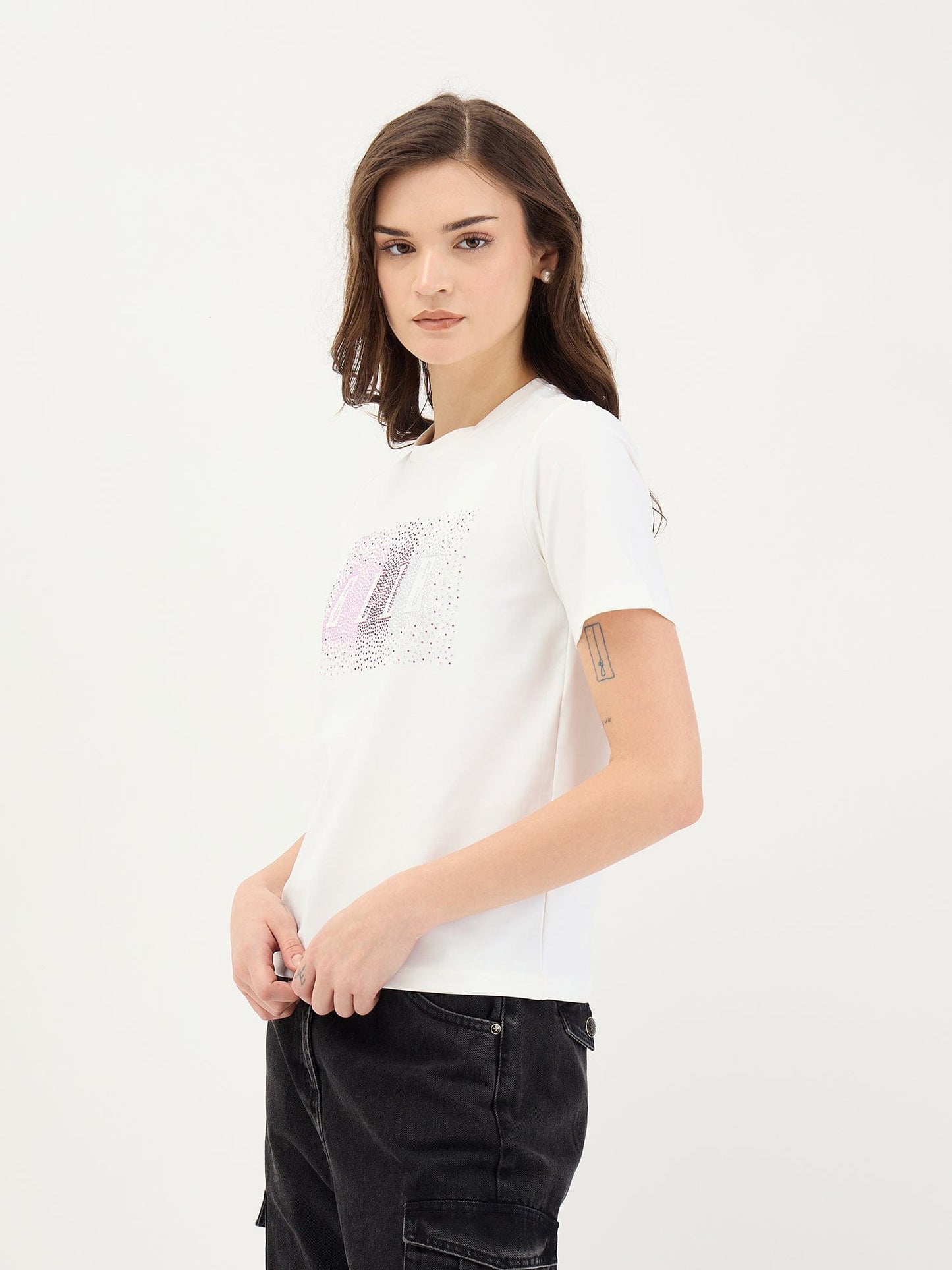 Discover the perfect blend of comfort and style with our women's white t-shirt. Featuring a relaxed fit and a chic brand logo pattern, this short sleeve tee is designed for everyday wear. The round neck adds a classic touch, while the polyester fabric ensures durability and easy maintenance. With a convenient pull-on closure, it's perfect for on-the-go lifestyles. The stretchable chest branding offers a unique flair, making it a versatile addition to your wardrobe. Ideal for casual outings or lounging at home.