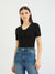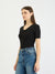 Elevate your everyday style with this chic and comfortable black top. Crafted from a soft polyester blend, this fitted top features a flattering ribbed pattern that hugs your curves. The scoop neck and short sleeves offer a classic and versatile look, while the button closure adds a touch of sophistication. Perfect for casual outings, workwear, or a night out, this top is a wardrobe essential.