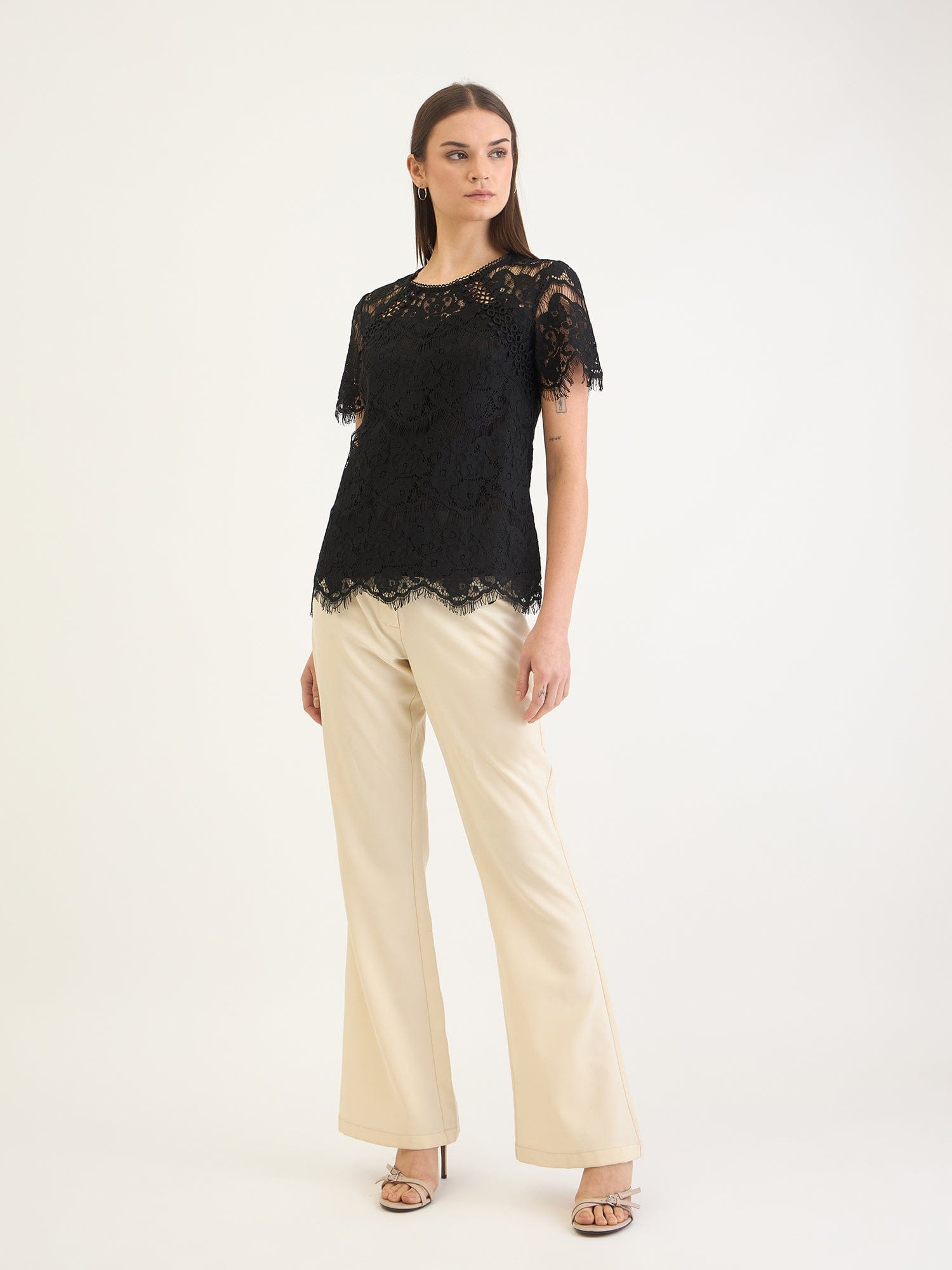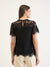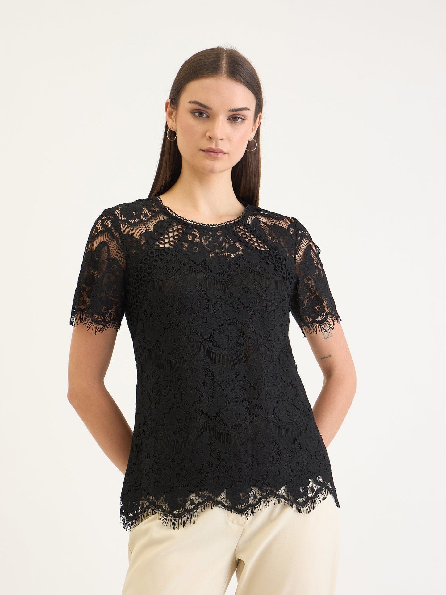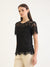 Discover elegance with our black lace top, designed for the modern woman who values style and comfort. This top features a relaxed lace pattern that exudes sophistication, perfect for any occasion. Crafted from a premium cotton blend fabric, it offers a soft touch and breathability. The half sleeves and round neck provide a classic silhouette, while the button closure adds a touch of practicality. With its regular length and full lining, this top ensures coverage without compromising on style. Whether paired with jeans for a casual look or dressed up with a skirt, this versatile piece is a must-have in your wardrobe.