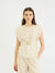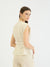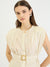 Embrace effortless style with this chic cinched waist top. Crafted from soft polyester, it features a relaxed fit for ultimate comfort. The striped pattern adds a touch of sophistication, while the sleeveless design and round neck create a flattering silhouette. The button closure at the front allows for easy on and off. This beige beauty is perfect for casual outings, brunch dates, or a day at the office.