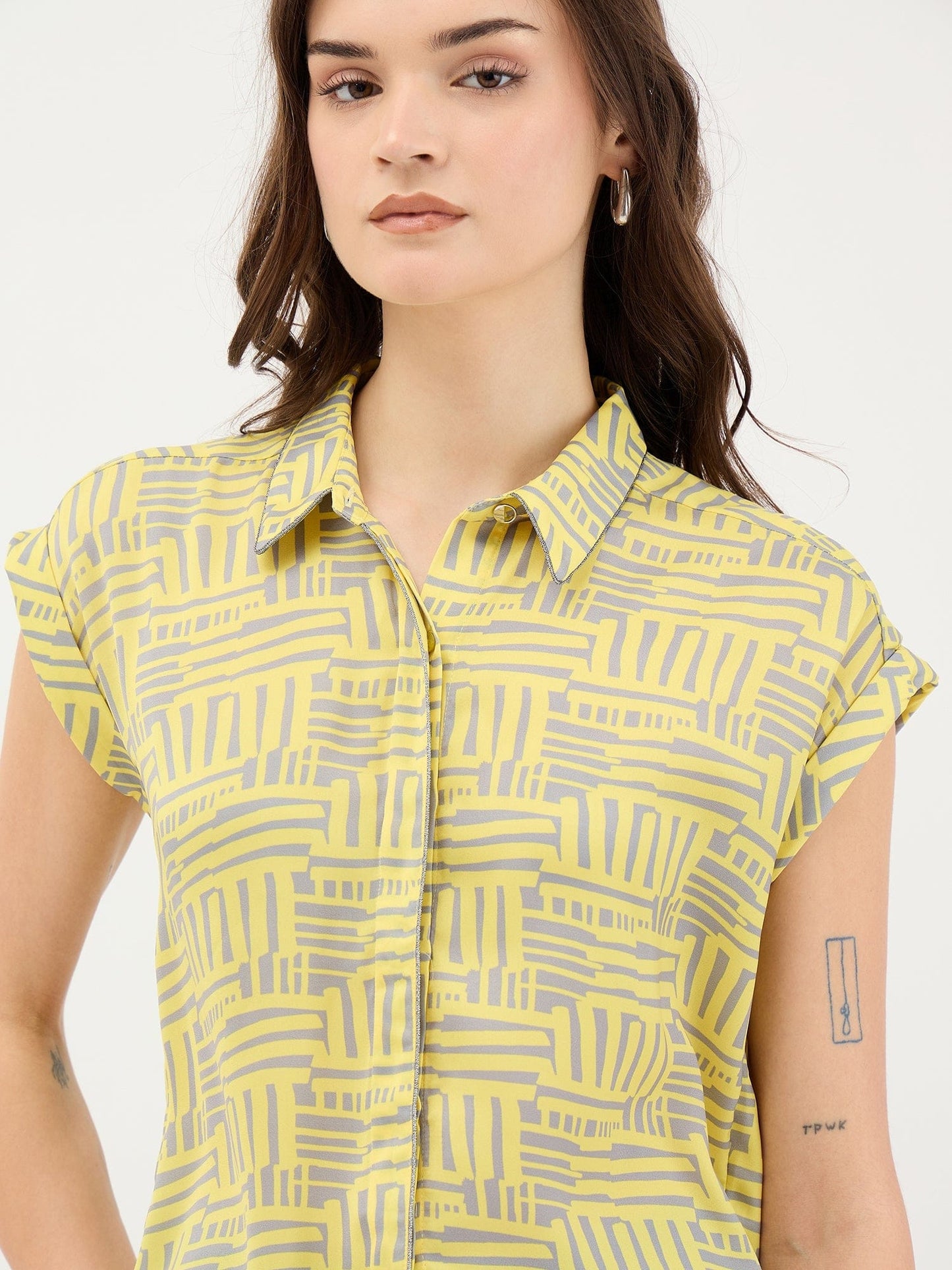 Elevate your wardrobe with this stylish yellow shirt-style top, perfect for any occasion. Crafted from high-quality polyester fabric, it offers a relaxed fit that drapes beautifully on the body. The abstract pattern adds a touch of modern flair, making it a standout piece. Featuring extended sleeves and a spread collar, this top combines comfort with sophistication. The button closure ensures a secure fit, while allowing for versatile styling options. Pair it with your favorite jeans or skirts for a chic, effortless look.