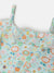 Girls Green Printed Round Neck Playsuit