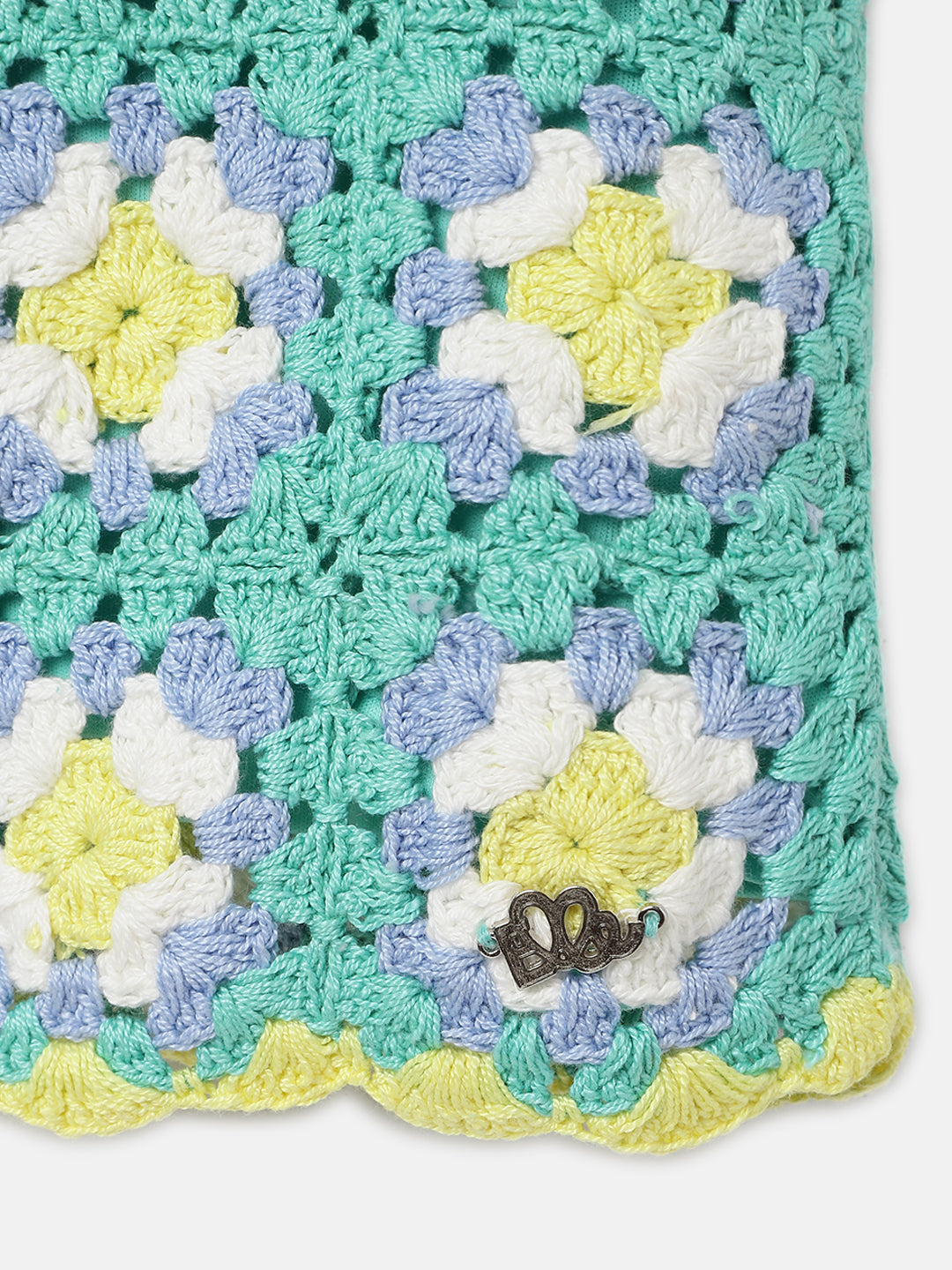 Elle Kids Girls Green Self-Design Round Neck Sleeveless Top