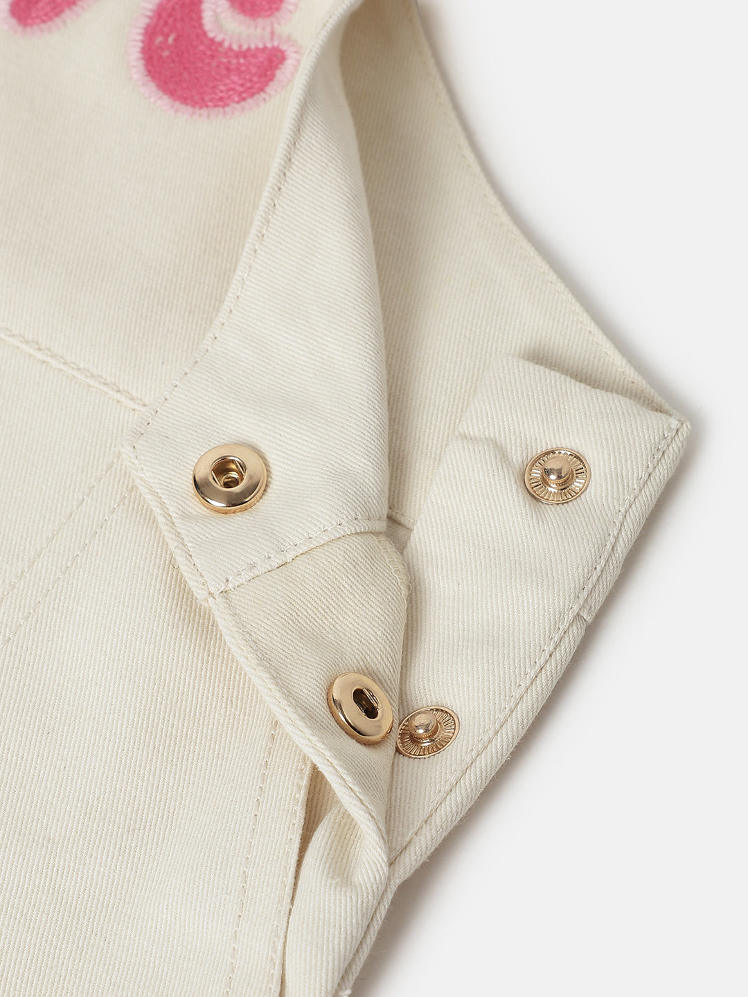 This elegant beige dress features a regular fit and is adorned with a beautiful embroidered pattern. Designed with a sleeveless style and a square neck, it offers a chic and sophisticated look. The dress is completed with a convenient snap button closure, making it perfect for girls.