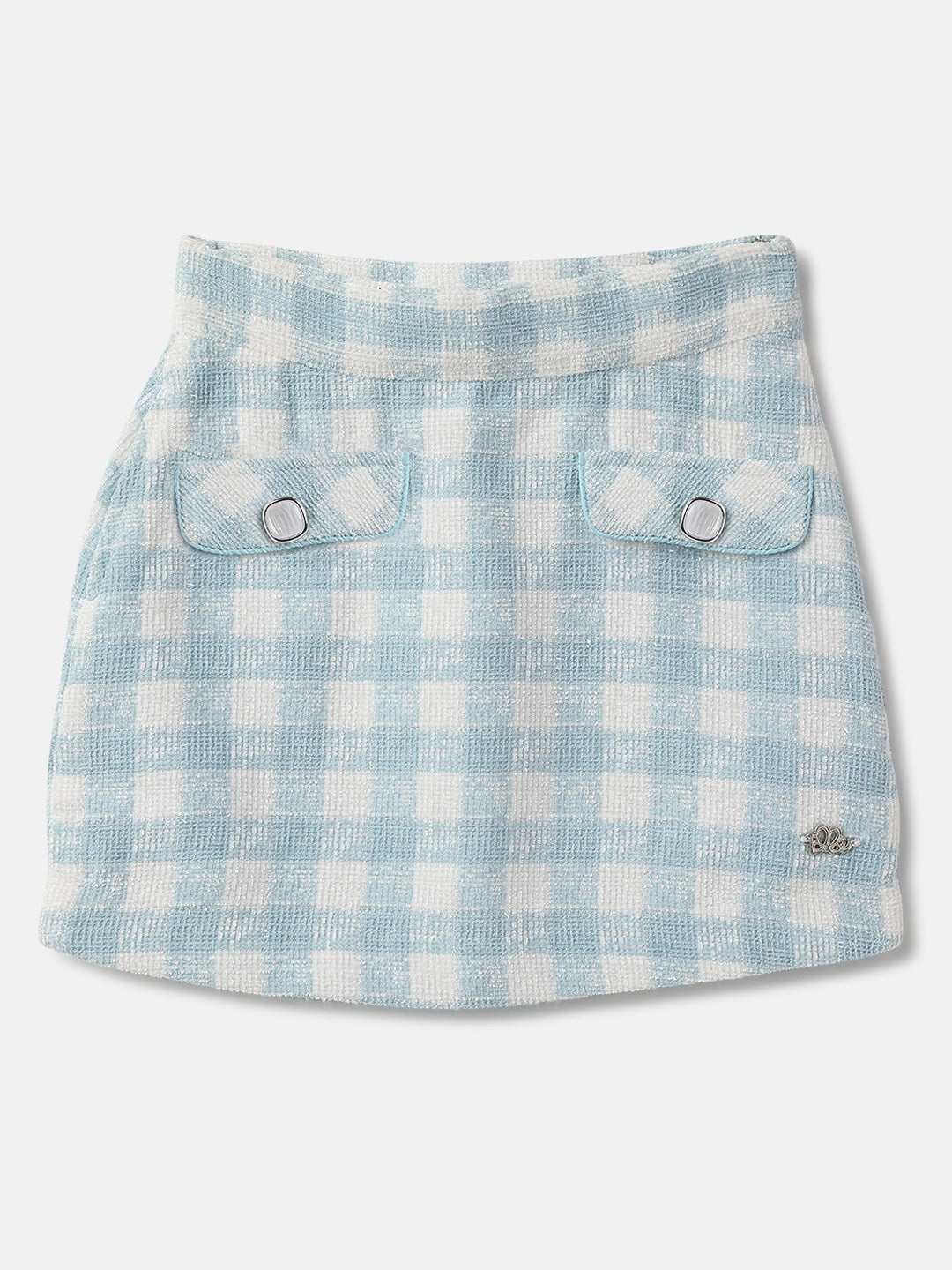 This stylish blue checked skirt is perfect for girls who love a classic look. Made from comfortable polyester, it features a regular fit, mid rise, and concealed zip closure for easy wear.