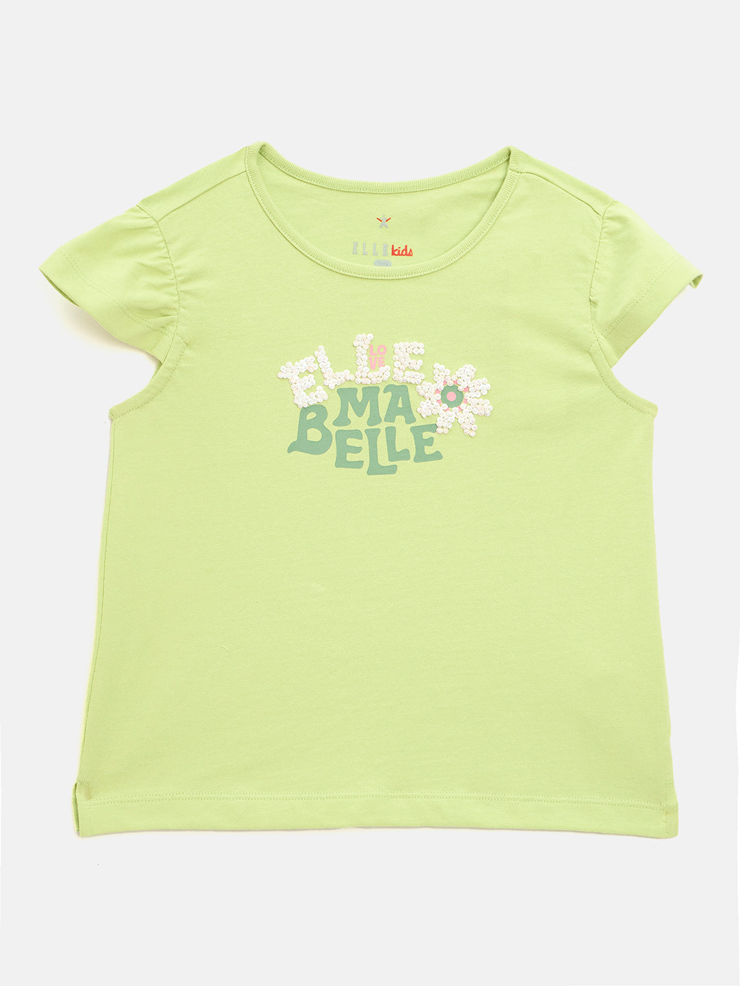 Discover the perfect blend of comfort and style with our stretchable green top for girls. Featuring a relaxed fit and a trendy typography pattern, this top is designed for everyday wear. The cap sleeves and round neck add a touch of elegance, while the pure cotton fabric ensures breathability and softness against the skin. With a convenient pull-on closure, it's easy to wear and perfect for any casual outing. Ideal for pairing with jeans or skirts, this versatile top is a must-have addition to any wardrobe.