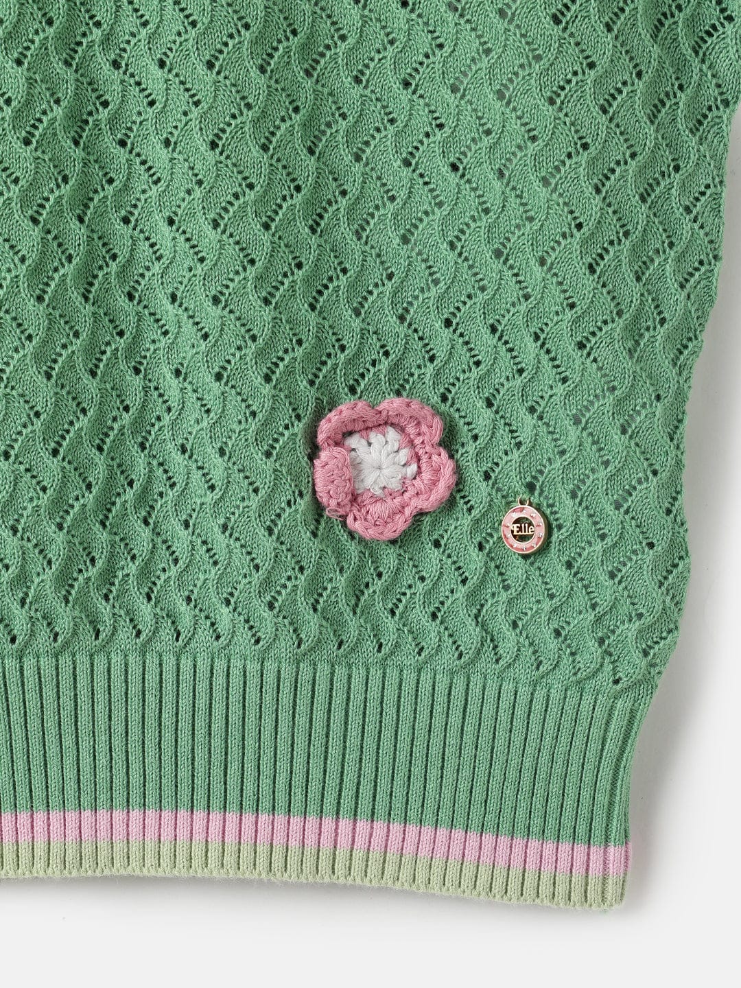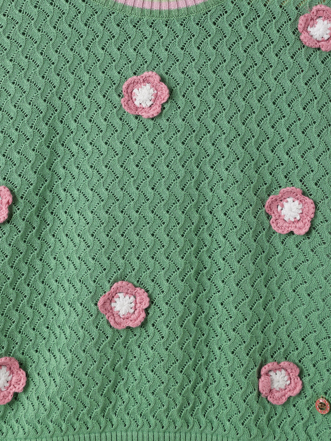 Discover the perfect blend of style and comfort with our green knitted top for girls. This charming piece features a box fit adorned with delightful floral appliques, adding a touch of whimsy to any outfit. Crafted from soft cotton fabric, it offers a breathable and comfortable wear. The cap sleeves and round neck design provide a classic look, while the pull-on closure ensures easy dressing. The stretchable flat knit structure enhances flexibility, allowing for all-day comfort. The 3D flower applique adds an extra dimension of fun and elegance, making it a must-have addition to any wardrobe.