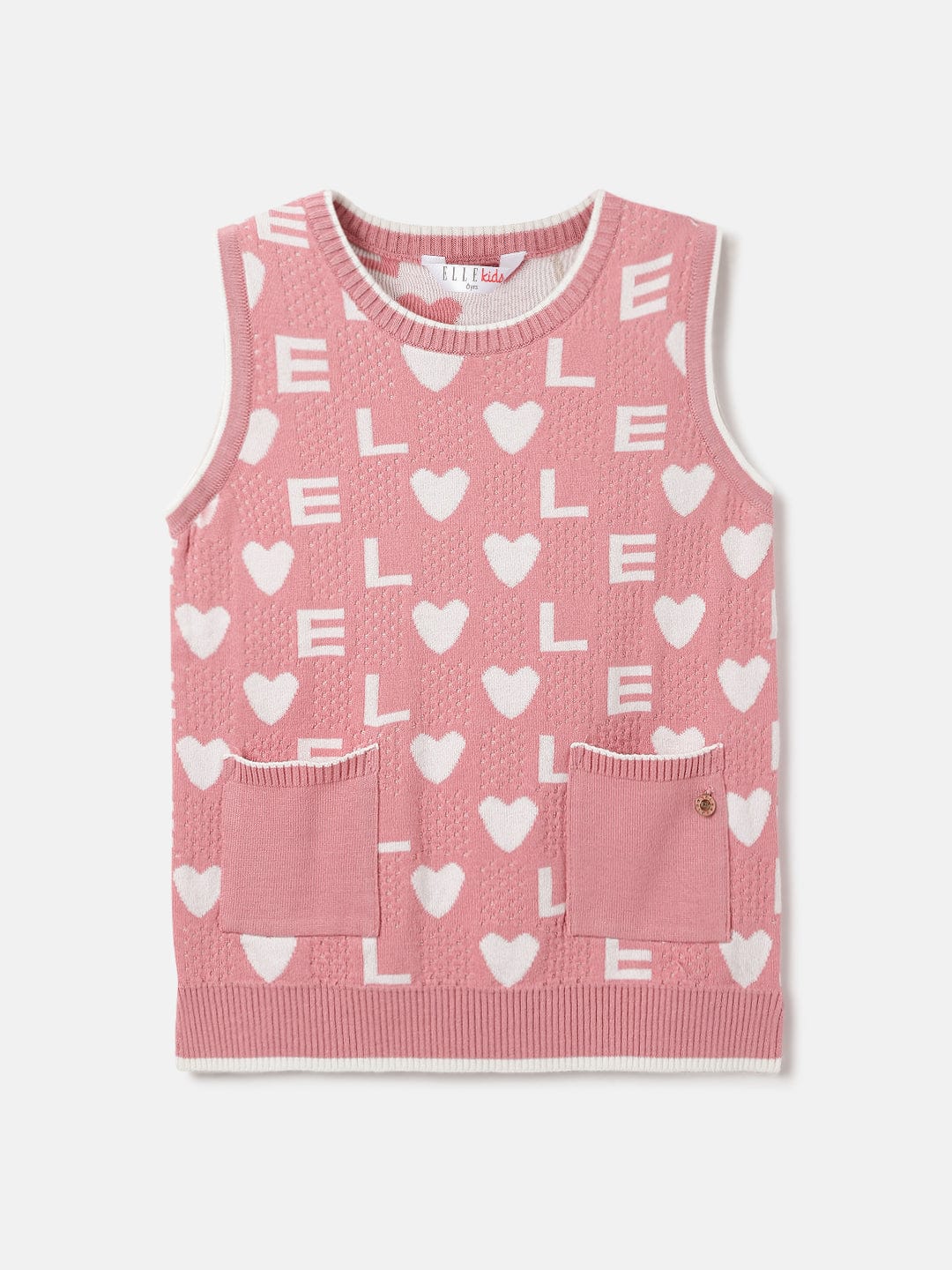 This sleeveless pink t-shirt is perfect for girls who love a relaxed fit and a touch of style. Made from pure cotton it features a heart pattern texture and a round neck. The flat knit structured t-shirt is stretchable and has branding for a touch of personality. It's easy to pull on and off making it a great choice for everyday wear.