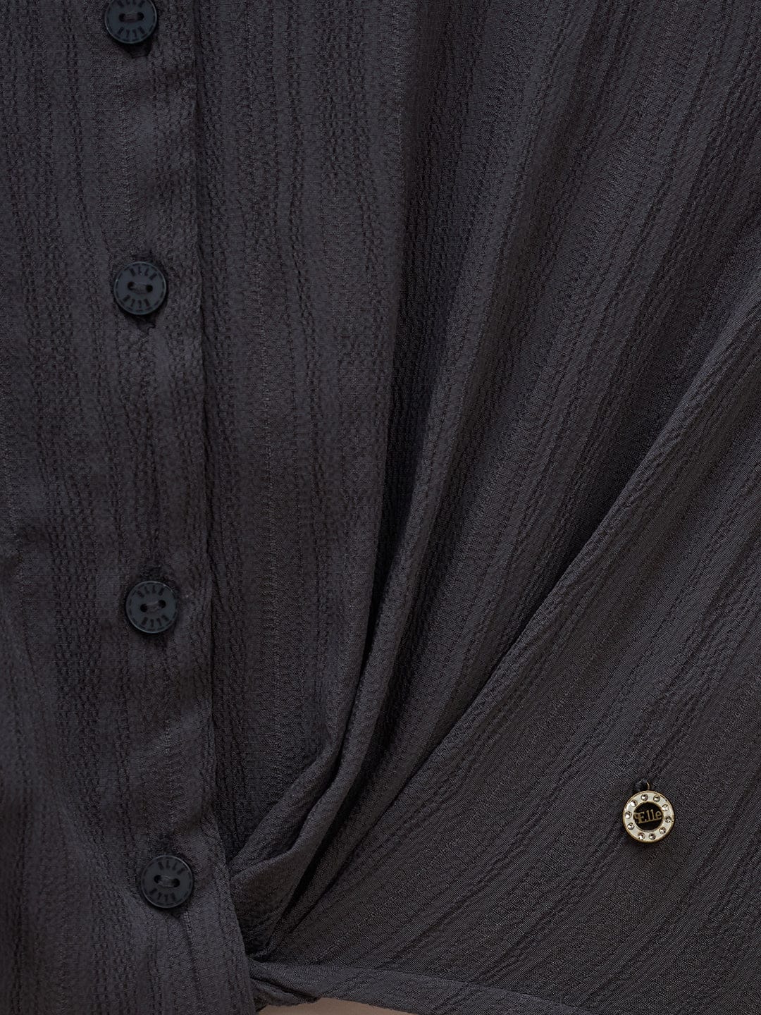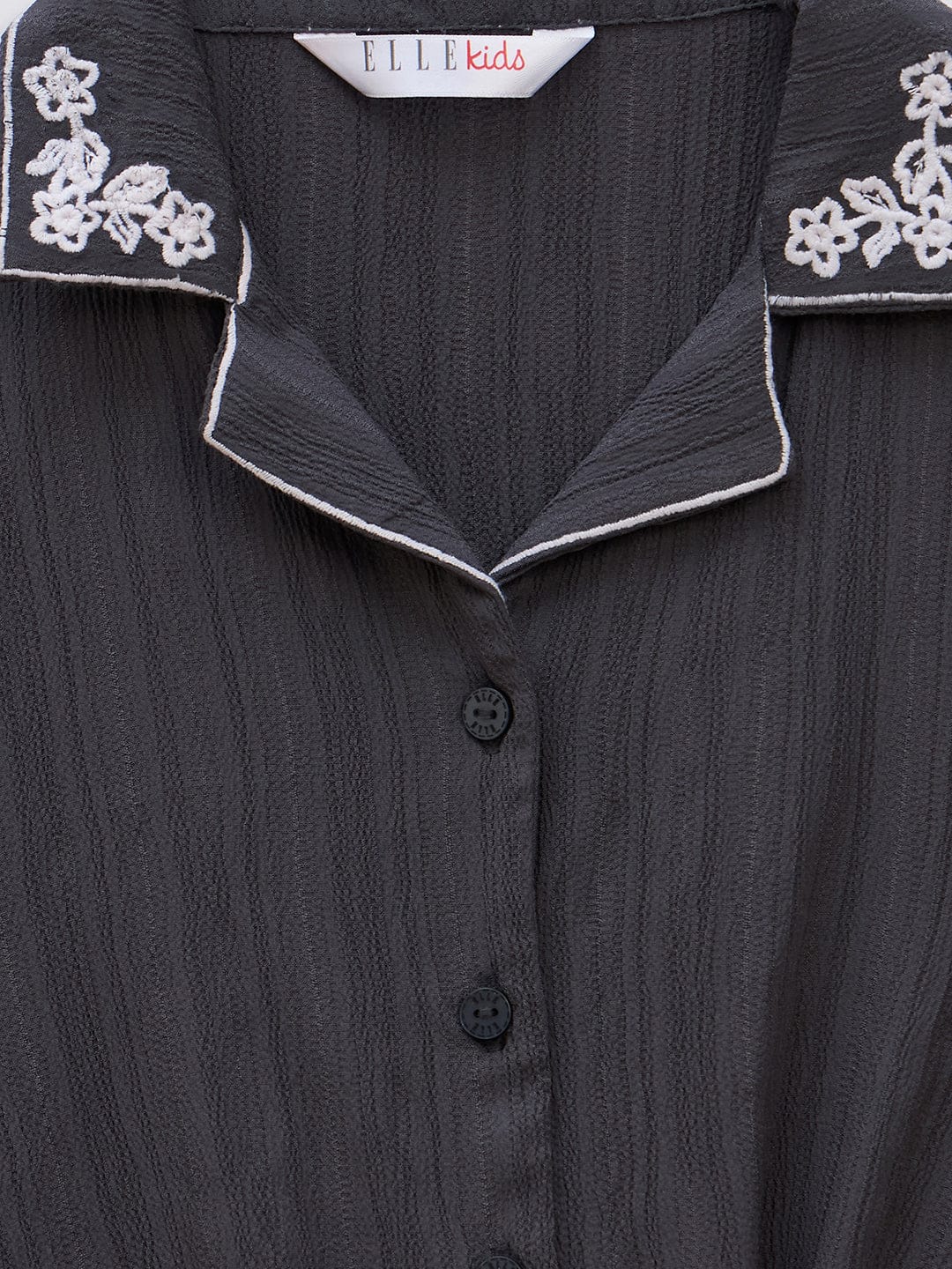 Discover the perfect blend of style and comfort with our black boxy fit shirt top for girls. Crafted from high-quality polyester fabric, this top features a unique textured pattern that adds a touch of sophistication to any outfit. The short sleeves and resort embroidered collar offer a chic, relaxed vibe, making it ideal for casual outings or special occasions. The button closure ensures easy wearability, while the breathable material keeps you comfortable all day. Elevate your wardrobe with this versatile and stylish piece.