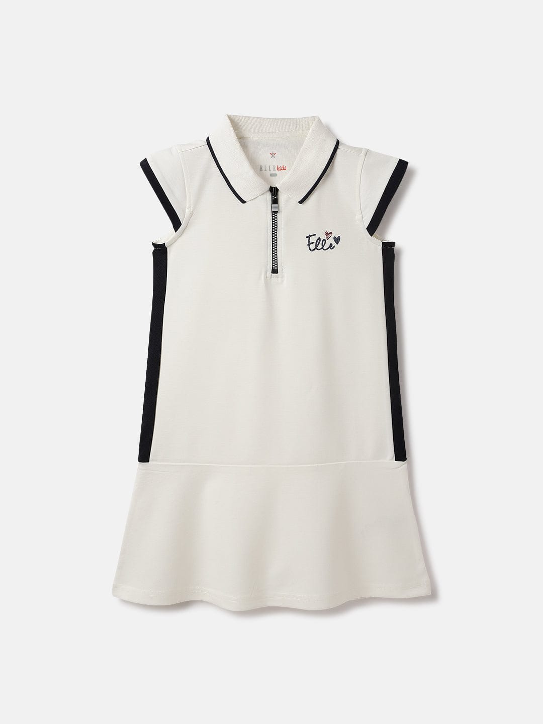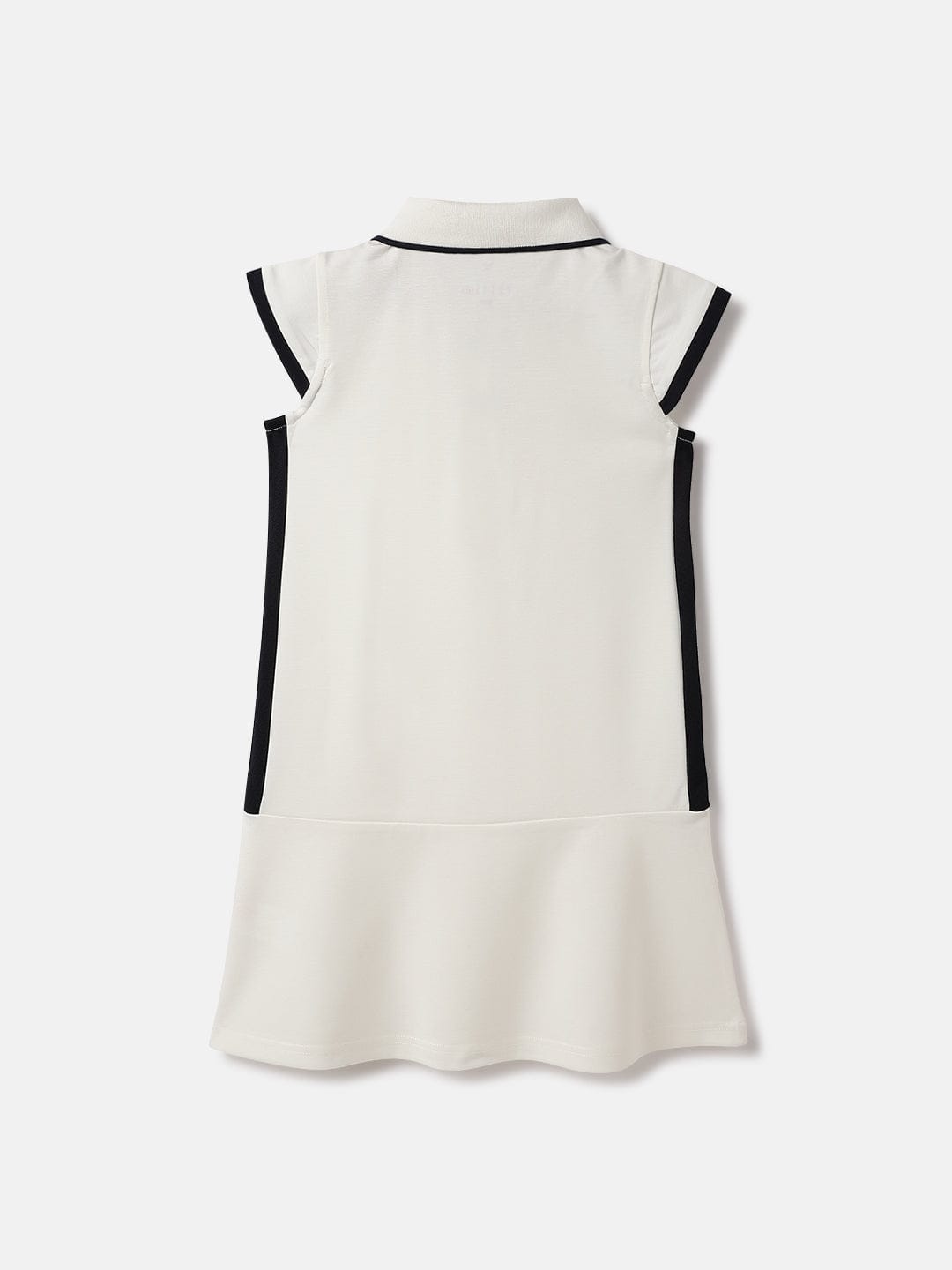 This white t-shirt dress is perfect for girls who love to play tennis It features a classic shirt collar cap sleeves and a zipper closure for easy on and off The dress is made of stretchable polyester fabric that moves with you on the court The solid pattern line adds a touch of style while the branding note shows your team spirit