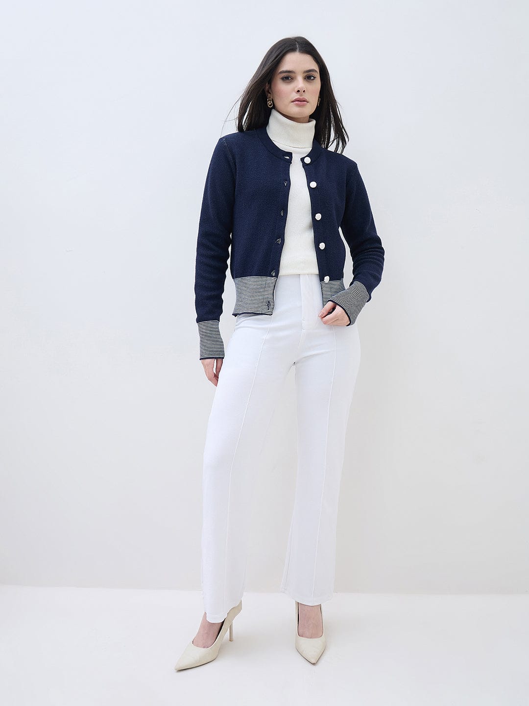 ELLE Women Multicolour Textured Crew Neck Sweater