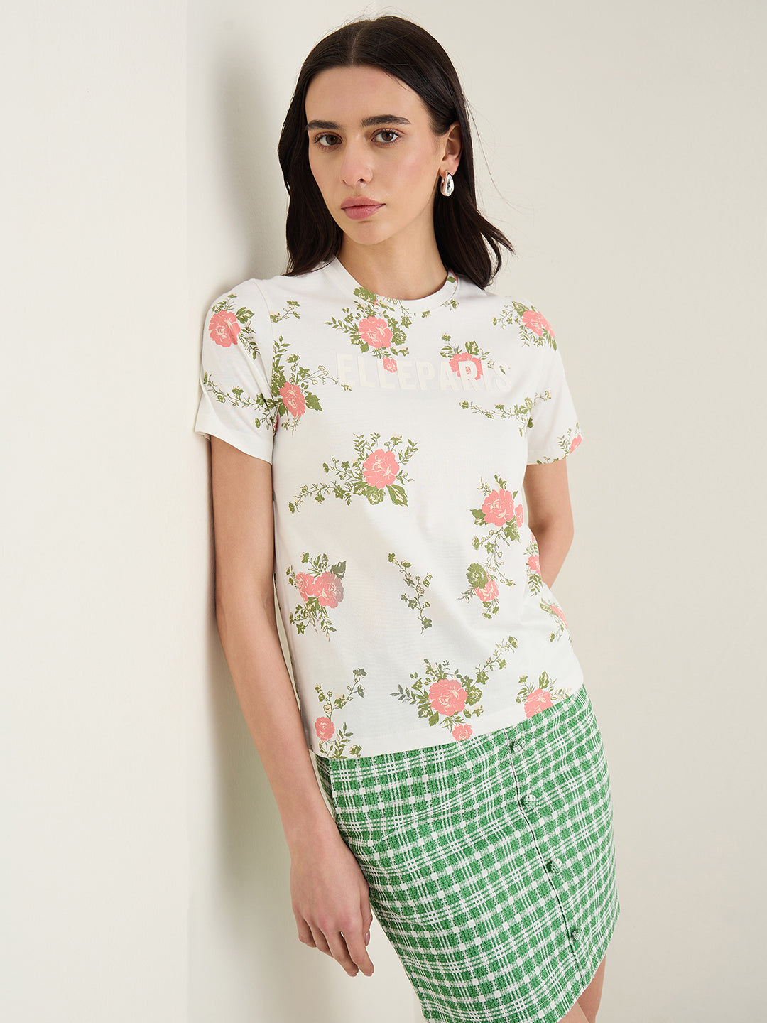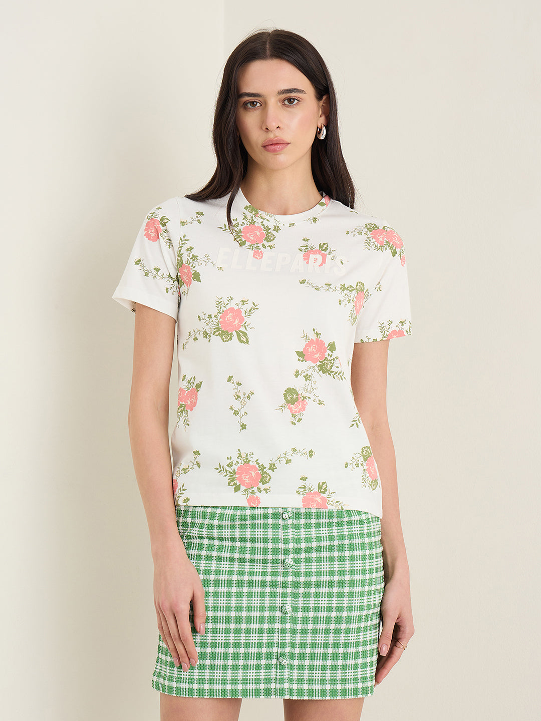 Elevate your everyday style with the ELLE Women's Multicolor Printed Round Neck T-Shirt. This trendy and versatile top features a vibrant and eye-catching print that adds a pop of color to any outfit. Made from soft and comfortable fabric, this t-shirt is perfect for all-day wear. The classic round neck design ensures a flattering fit for all body types. Whether you are running errands or meeting friends for brunch, this t-shirt is sure to make a statement. Upgrade your wardrobe with this chic and effortless piece that will have you turning heads wherever you go.