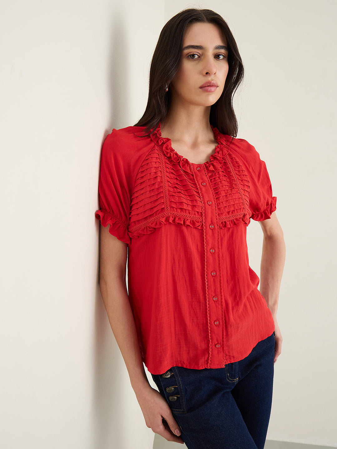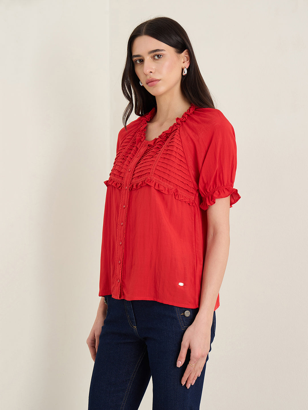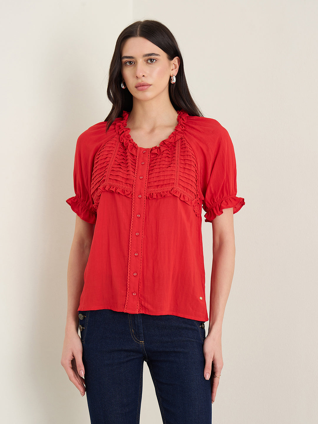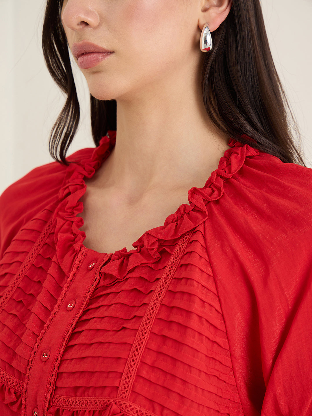 Womens Red Scoop Neck Top