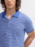 Men Blue Striped Polo Collar Short Sleeves Tshirt