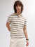 Men Khaki Striped Polo Collar Short Sleeves Tshirt