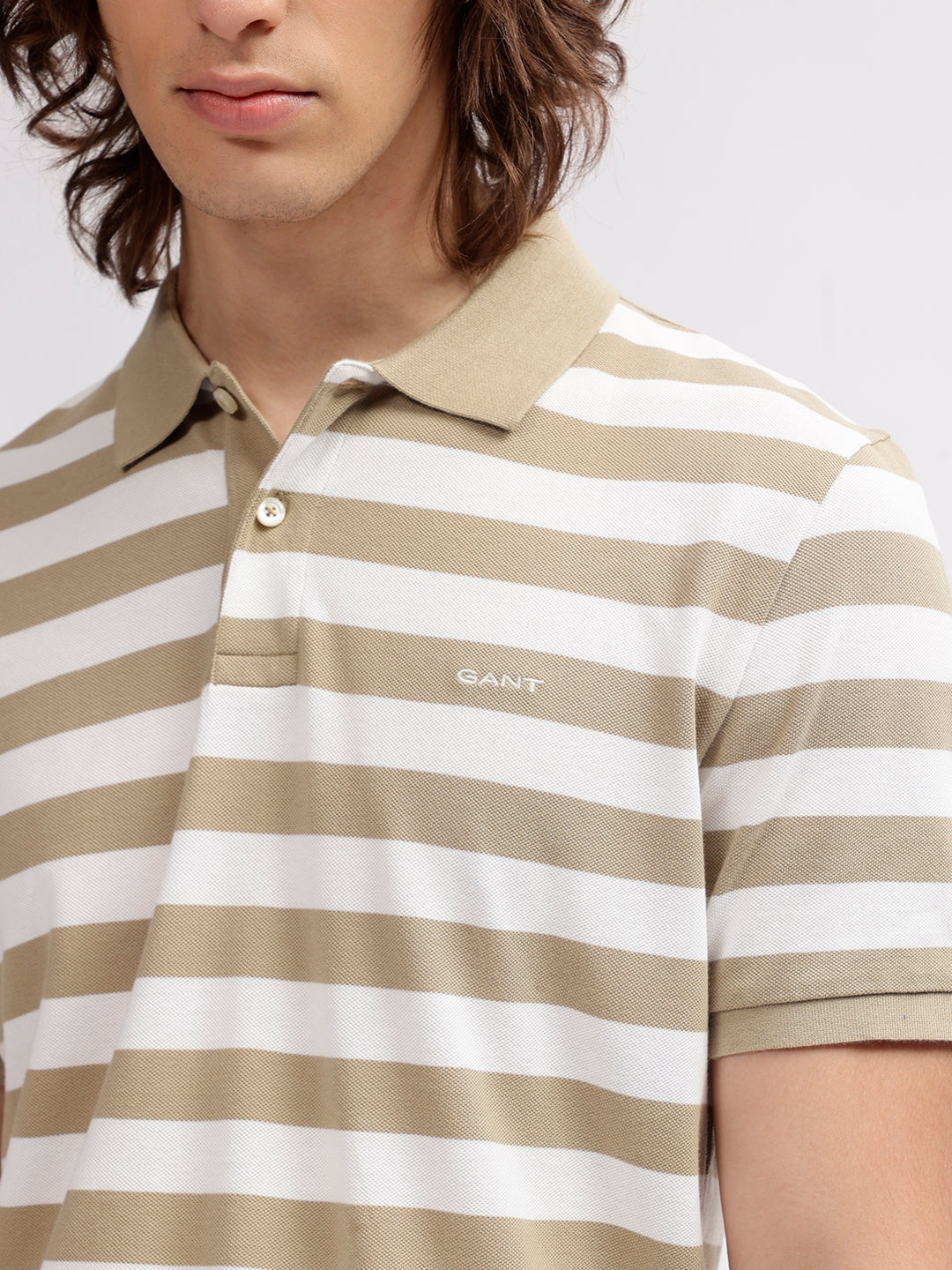 Gant Men Khaki Striped Polo Collar Short Sleeves Tshirt