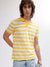 Men Yellow Striped Polo Collar Short Sleeves Tshirt