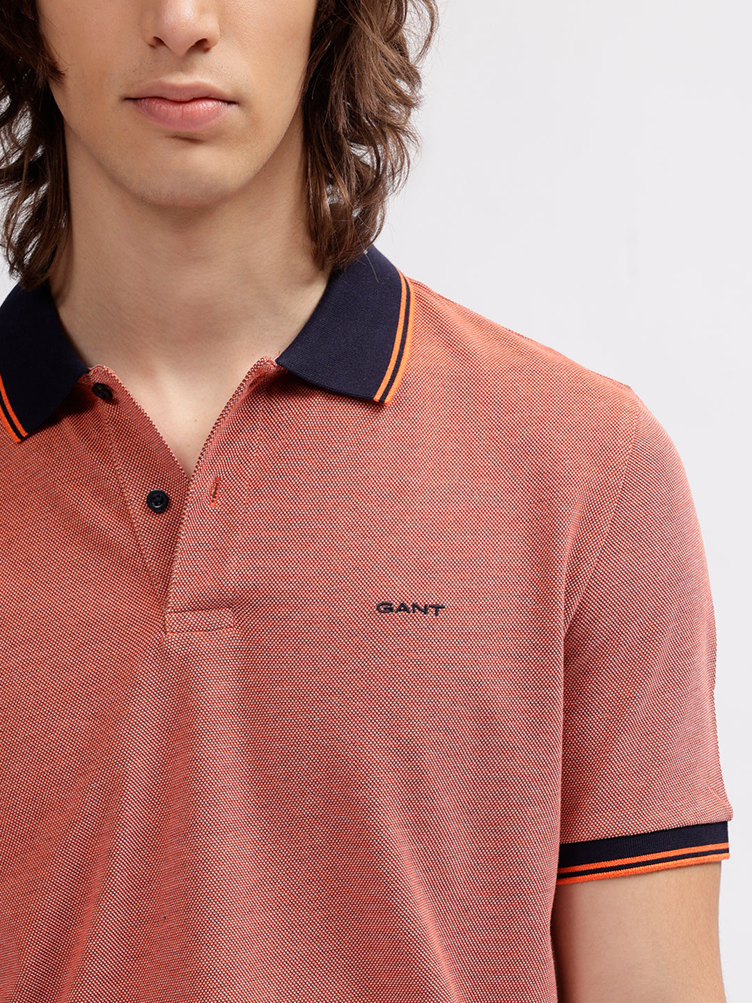 • Gant Men Orange Solid Polo Collar Short Sleeves T-shirt