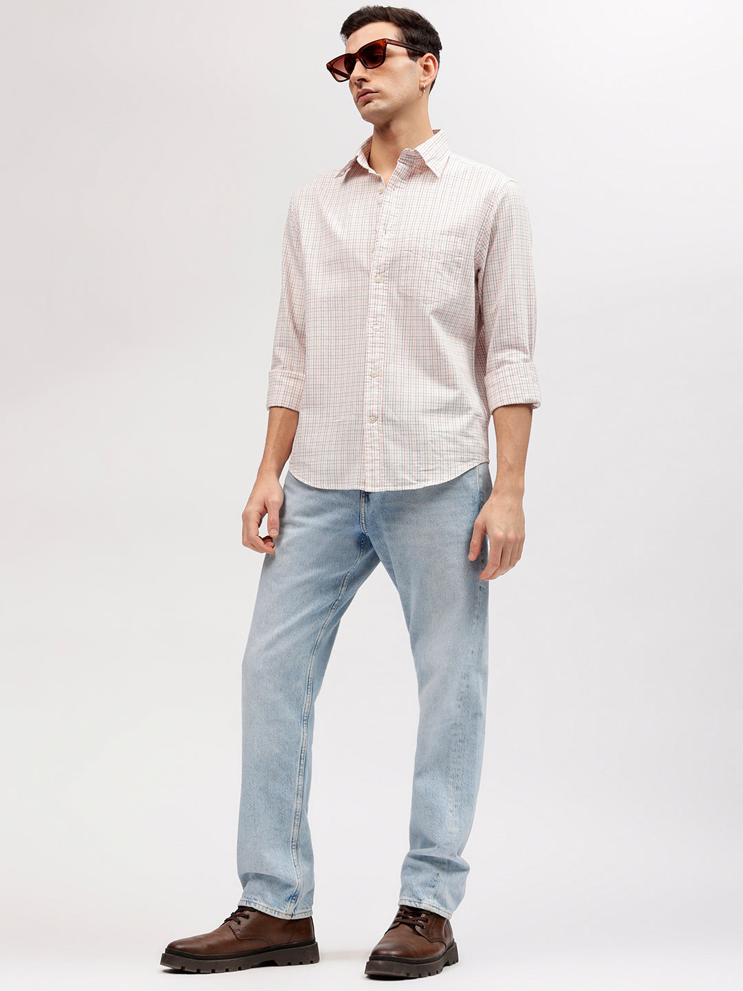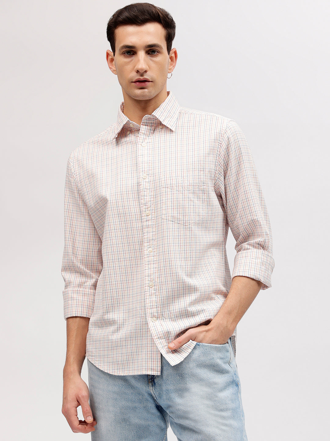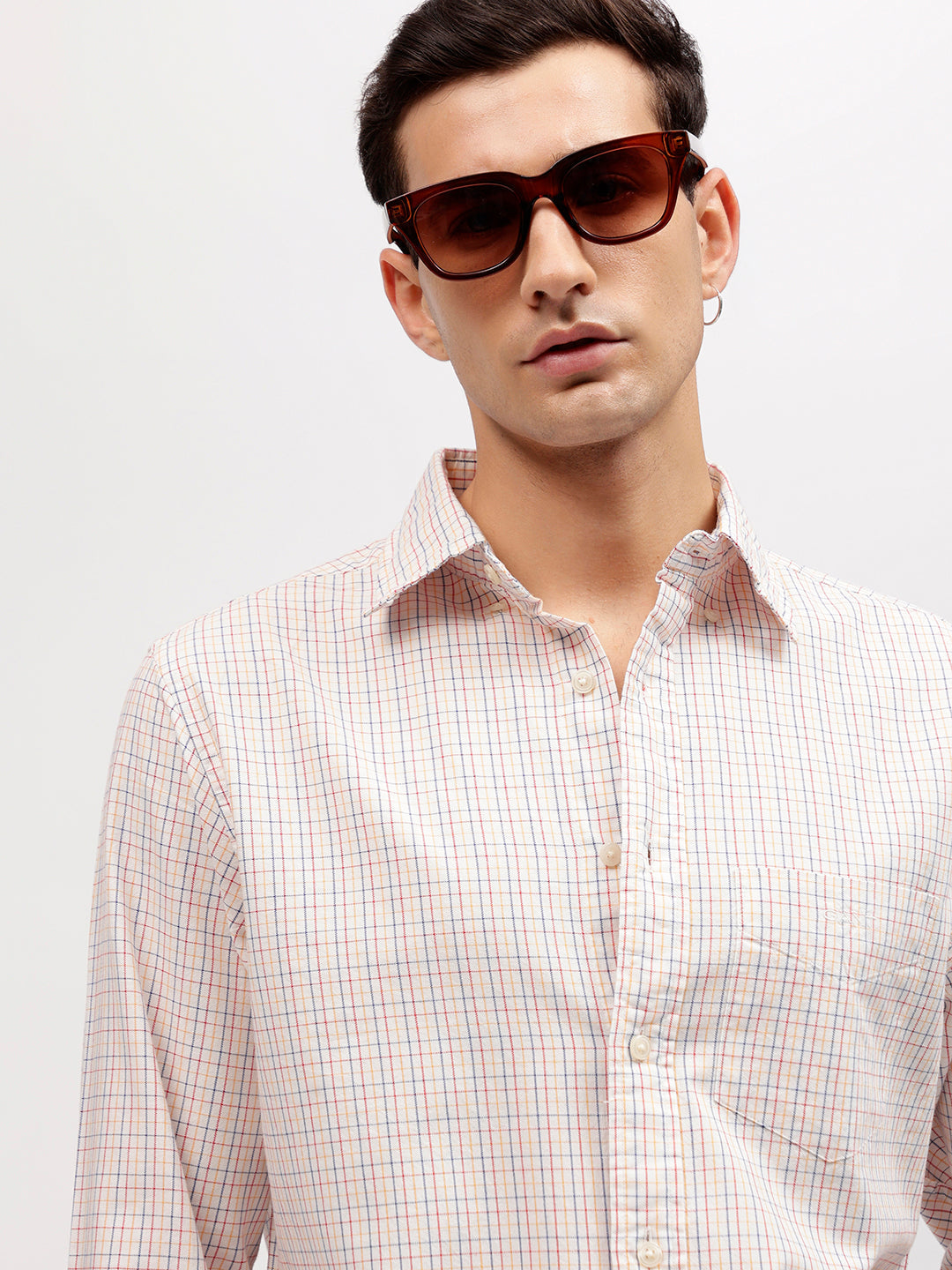 Men Off White Checked Button-down Collar Full Sleeves Shirt