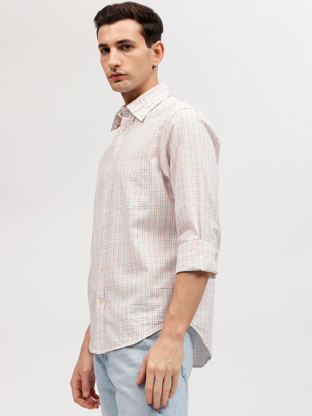 Gant Men Off White Checked Button-down Collar Full Sleeves Shirt