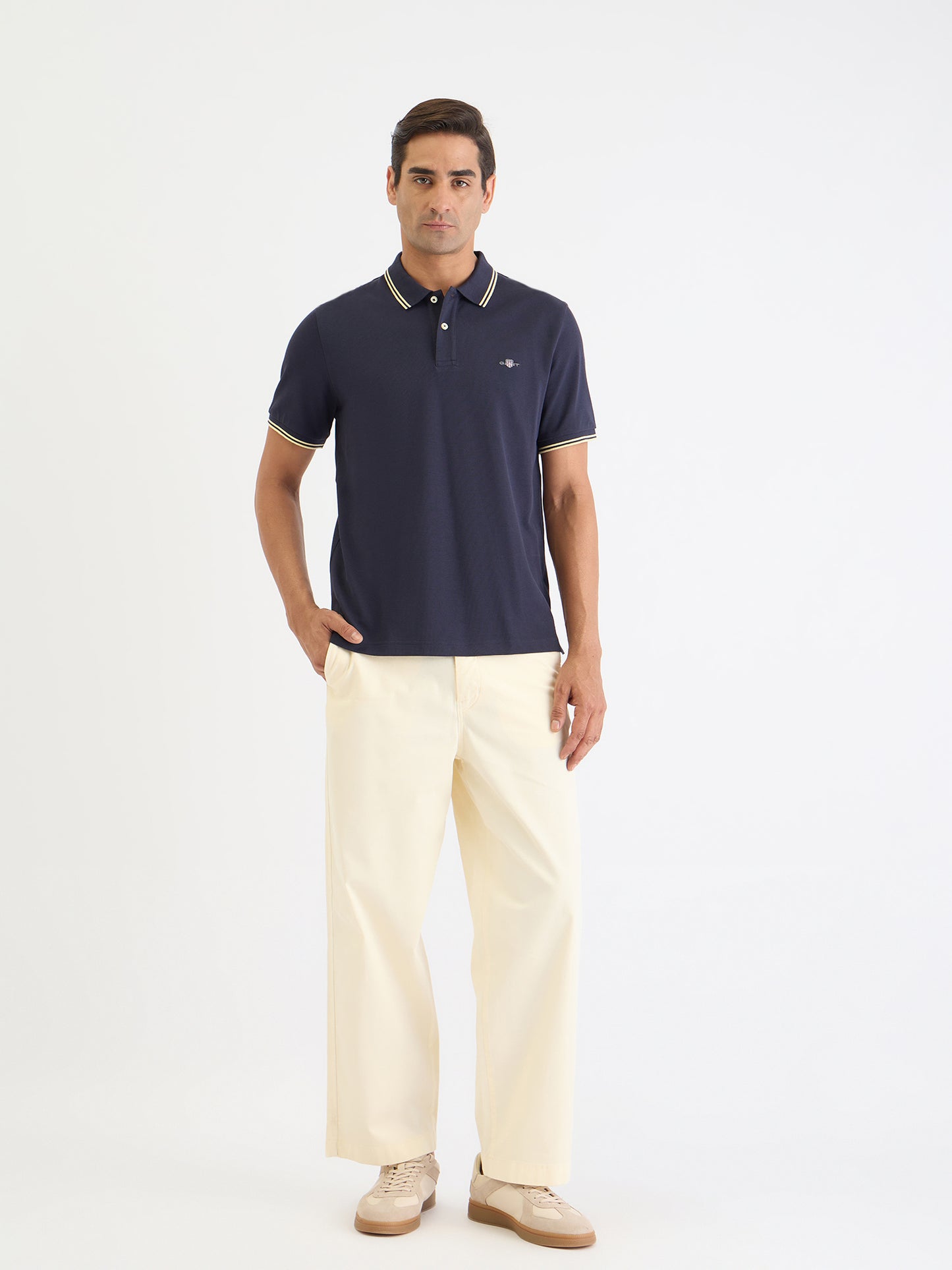 Elevate your everyday style with this classic navy blue polo shirt. Crafted from soft, breathable cotton, this regular-fit shirt offers all-day comfort. The timeless polo collar and short sleeves provide a clean and polished look, while the button closure adds a touch of sophistication. Perfect for casual outings, weekend adventures, or smart casual events, this versatile polo is a wardrobe essential.