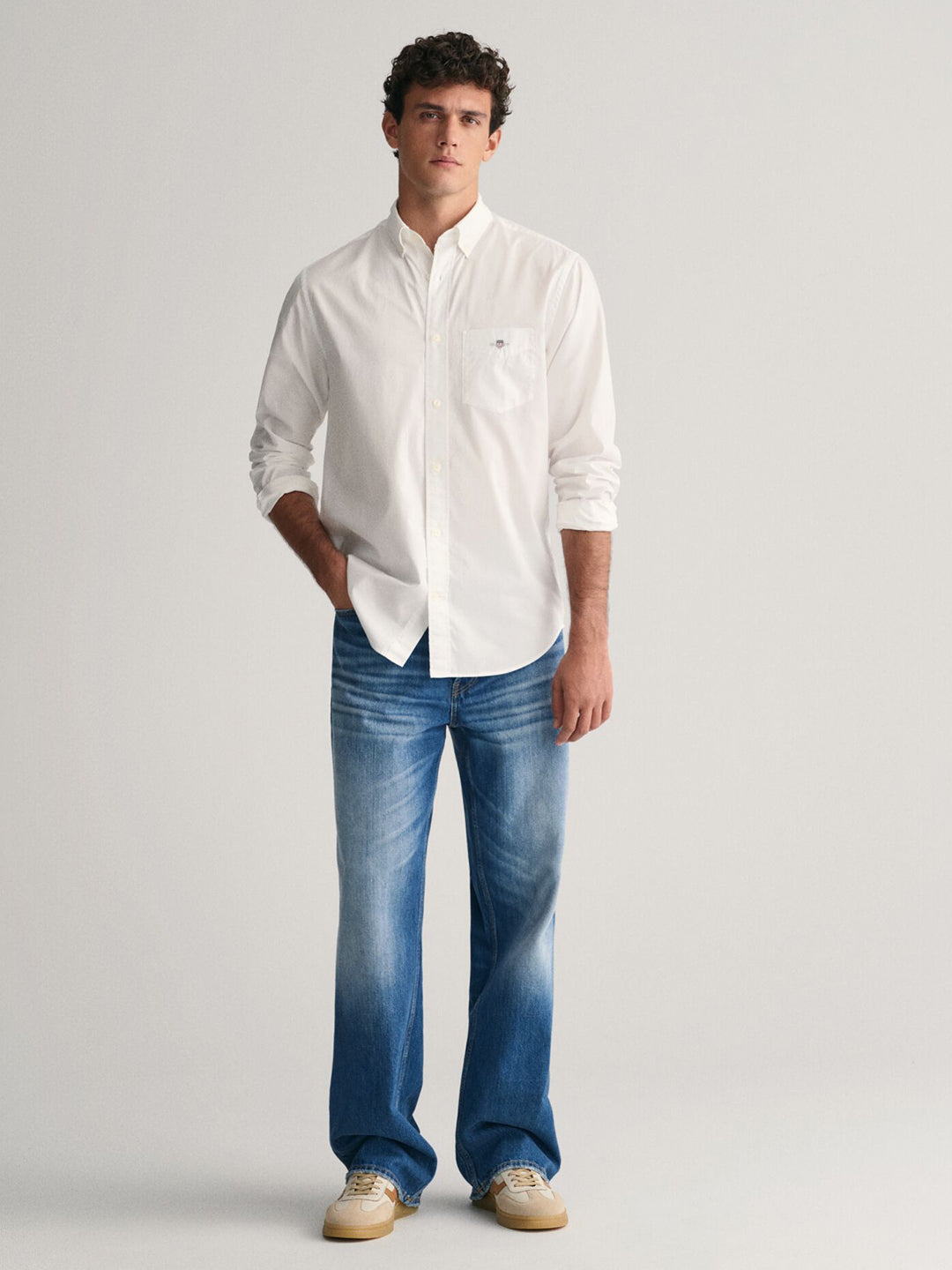 Gant Men White Solid Button-Down Collar Full Sleeves Shirt