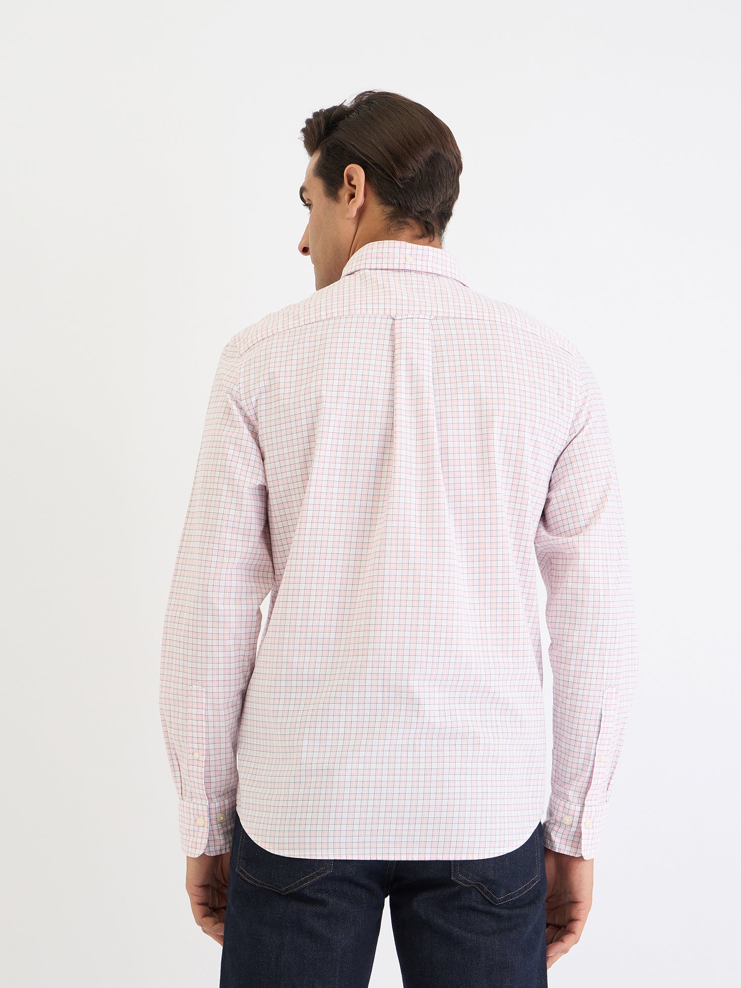 This classic men's shirt is crafted from soft, breathable cotton for all-day comfort. The regular fit ensures a flattering silhouette, while the full sleeves and button-down collar add a touch of sophistication. The pink check pattern adds a subtle pop of color, making it perfect for both casual and semi-formal occasions. The button closure provides a secure and comfortable fit.