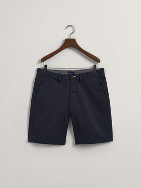 GANT Men Blue Solid Slim Fit Shorts are crafted with shell: 61% cotton (organic), 37% cotton, 2% elastane for an iconic look. Featuring a GANT logo on the right back pocket, a chambray interior waistband, and certified cotton with comfort stretch.