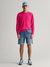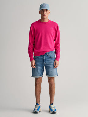 Introducing the iconic GANT Men Blue Solid Regular Fit Shorts. Crafted from a midweight cotton denim with added stretch for comfort, these shorts are a summer staple. Featuring classic 5-pocket styling and our diamond G logo on the coin pocket, they offer a timeless silhouette.