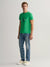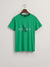 This iconic GANT Men Green Solid Round Neck t-shirt is made with 100% cotton for a soft handfeel. It features a striped necktape and a print on the chest, making it part of the Sail graphic program.