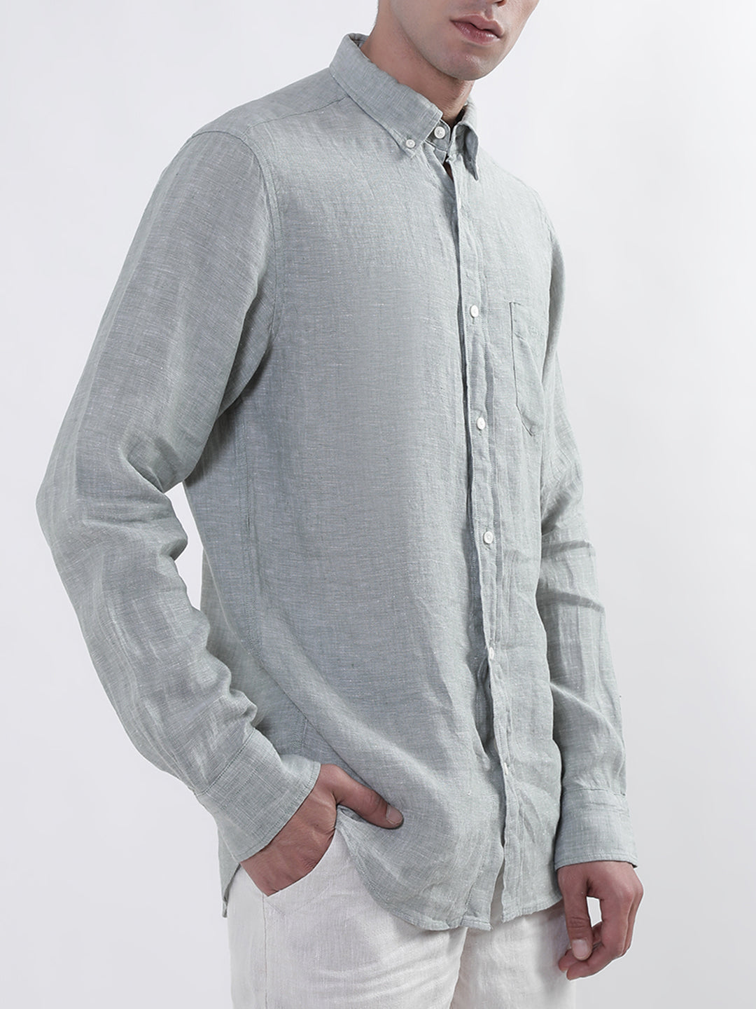 Regular Fit Long Sleeve Des: Solid Gant Embroidery At Chest Pocket Buttondown Collar Box Pleat With Locker Loop On Back Adjustable Cuffs Curved Hem Recycled Polyester Button Shoulder Yoke Fea: 100% Linen Linen Fabrication