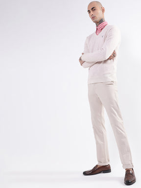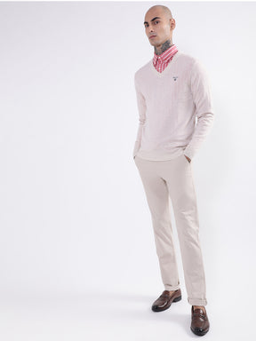 Elevate your wardrobe with this cream-colored sweater, crafted from soft wool for ultimate comfort. Featuring a classic V-neck and full sleeves, its solid pattern offers timeless style. The pull-on closure ensures effortless wear, making it the perfect layering piece for chilly days or cozy evenings. Embrace warmth and sophistication effortlessly.