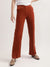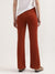 Women Rust Striped Cotton Straight Fit Bootcut Trouser